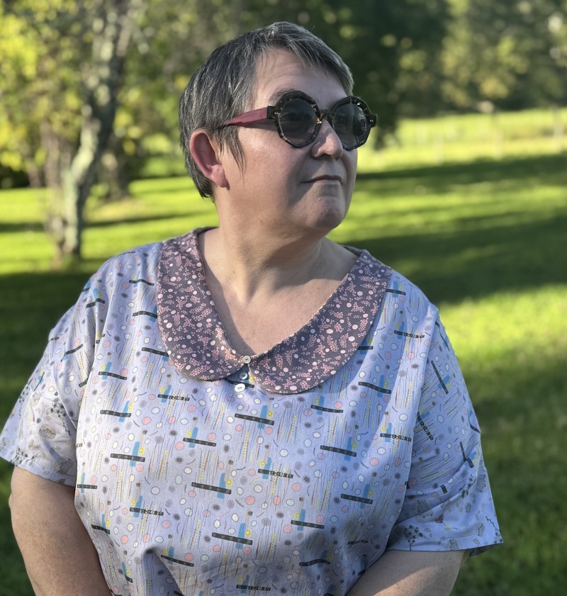 Entre deux salons, je me suis cousu un beau chemisier à manches courtes, en associant Fleurs et barrettes et Pois et grappes ! Et puis j’ai cousu également une housse de livres, pour ranger ma lecture en cours et la garder bien à l’abri !