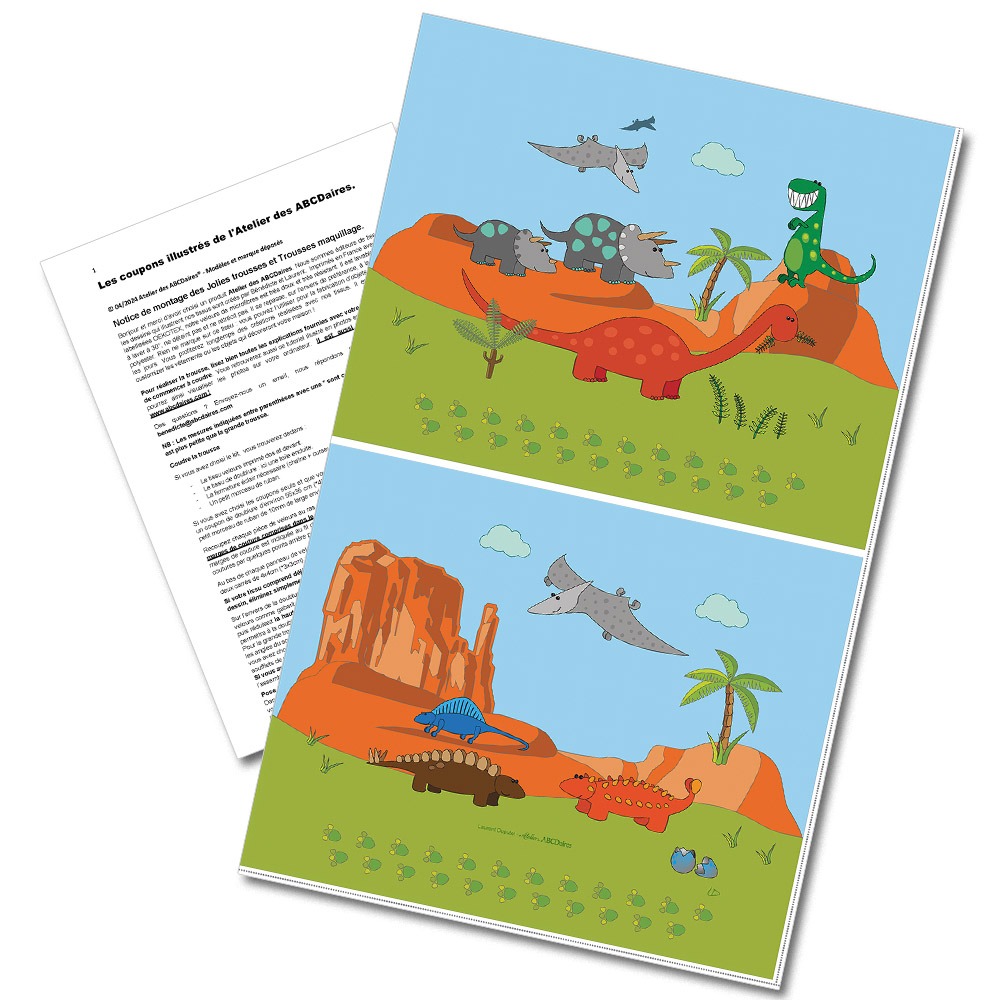 Ces 2 illustrations ont été dessinées par Laurent, d’Atelier des ABCDaires. Les 2 coupons vont vous permettre de coudre par exemple une grande pochette, une trousse de toilette, un sac à dos, un sac à main, une housse de tablette… !