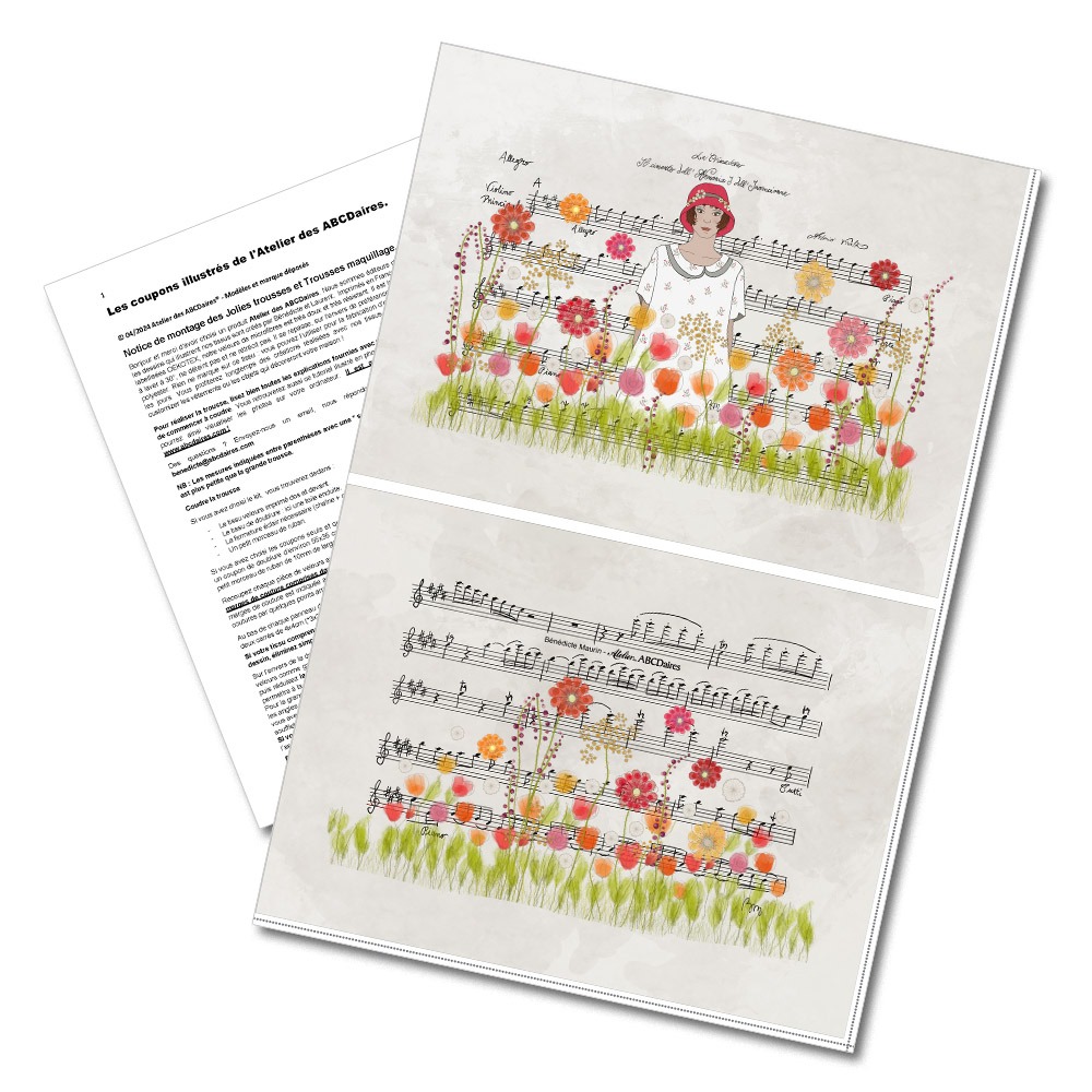 Ces 2 illustrations ont été dessinées par Bénédicte, d’Atelier des ABCDaires. Les 2 coupons vont vous permettre de coudre cette trousse à maquillage avec un recto et un verso différent, mais vous pouvez bien sûr coudre autre chose ! Pour coudre la trousse, il vous faudra en plus une fermeture éclair et un tissu pour l’intérieur.